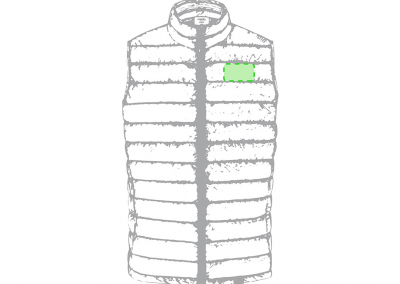 Forro interior de poliamida. Cálido y ultraligero. Compresible en su bolsa de almacenamiento. 2 bolsillos delanteros con cremallera. Certificado STANDARD 100 por OEKO-TEX® N° CQ 1007/8, IFTH.